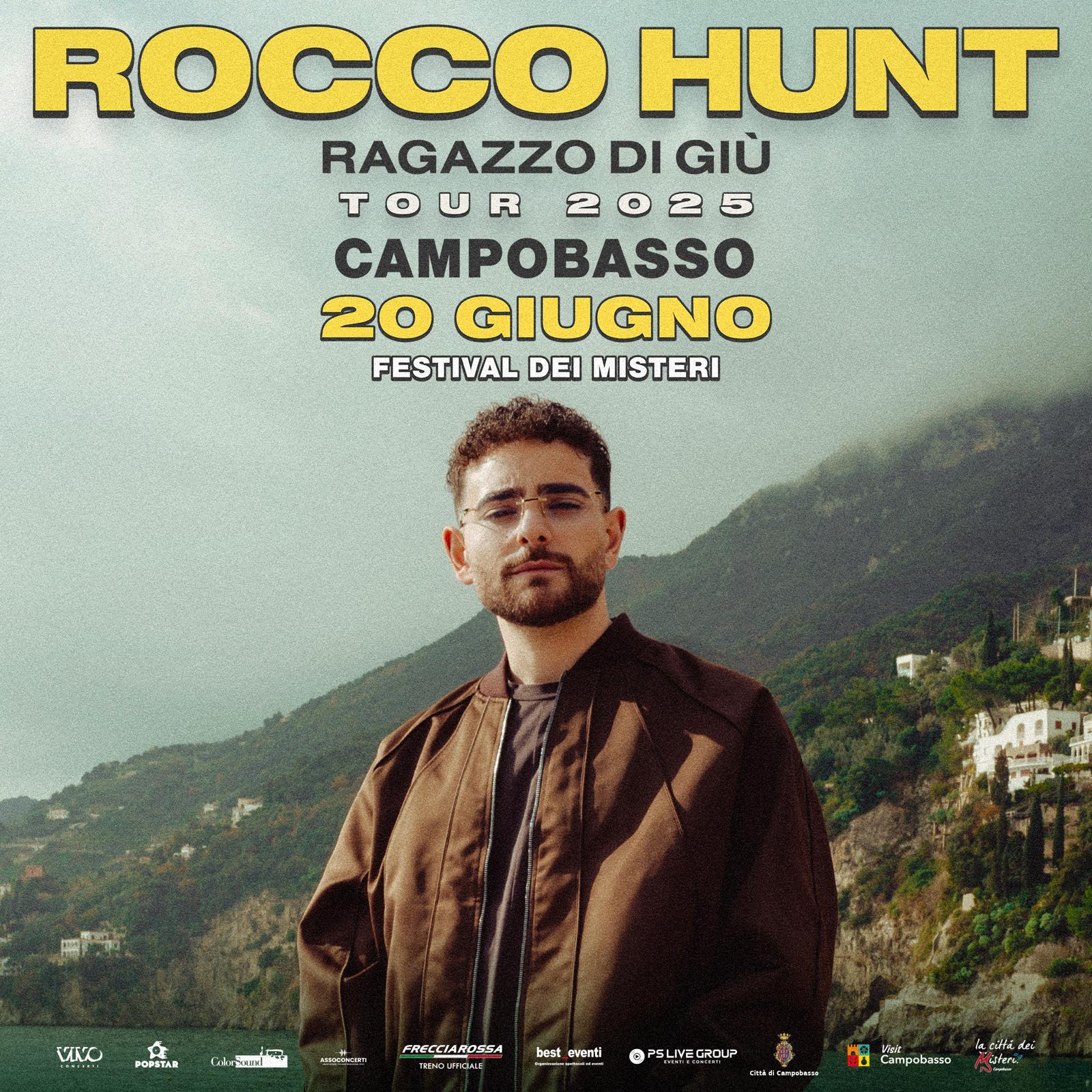 “Sono in una fase di preparazione – ha detto nei giorni scorsi Rocco Hunt in una intervista – perché quest’estate partiremo col tour, esordiremo con la data zero il 20 giugno a Campobasso, poi saremo in Puglia, Calabria, Sicilia, perché il ragazzo di giù comincia a suonare proprio ‘da giù’. E concluderemo in bellezza con due show che sono quelli dell’11 settembre alla Reggia di Caserta e del 6 ottobre a Milano. Sarà epico perché dopo sei album è davvero dura fare la scaletta, tra successi, pezzi nuovi eccetera, però con la mia band stiamo facendo il possibile per far emozionare e far divertire tutti. Sarà un concerto dove si vedranno tutte le anime di Rocco”.
