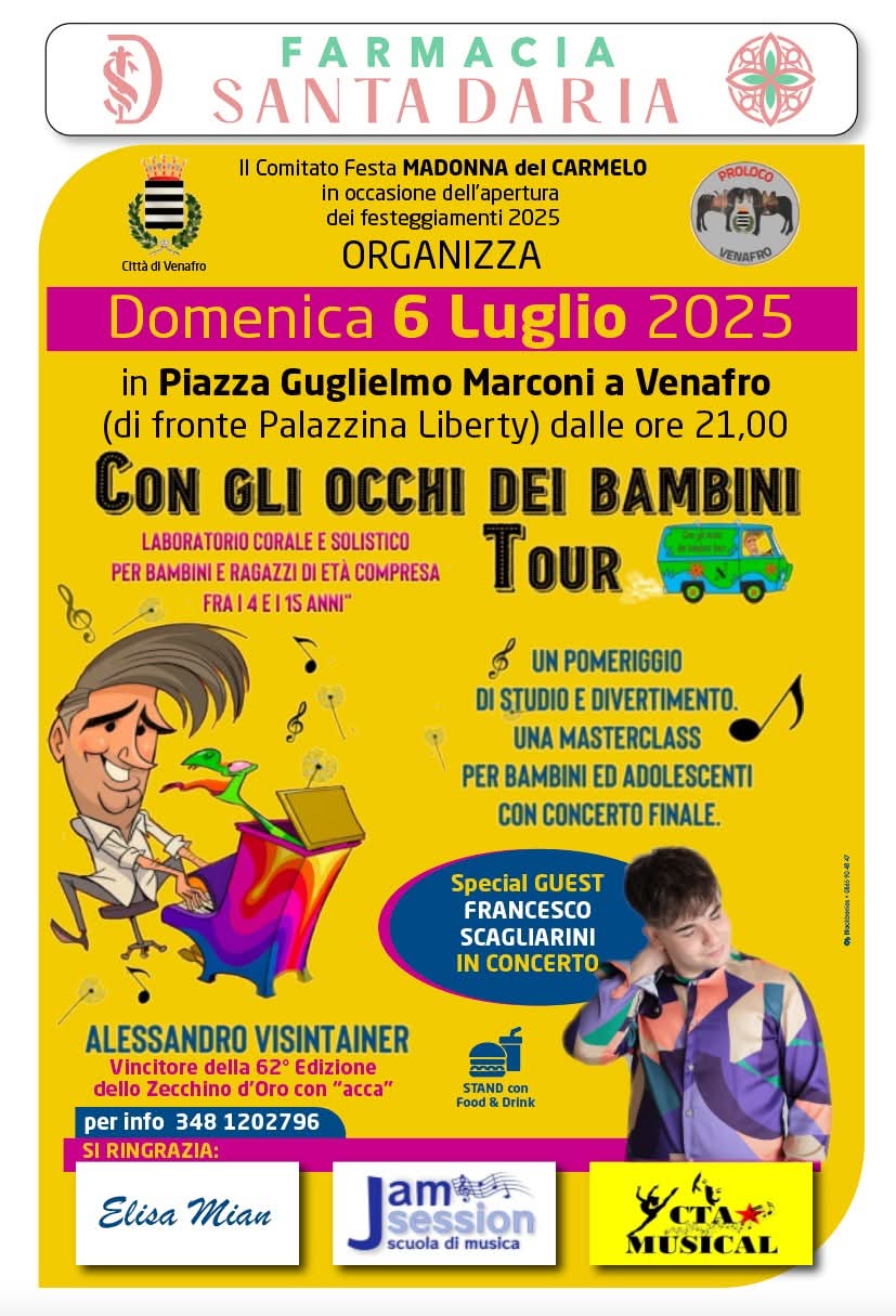 VENAFRO – ‘Con gli occhi dei bambini’, il tour del maestro Alessandro Visintainer approda a Venafro in occasione dell’apertura delle festività della Madonna del Carmelo.