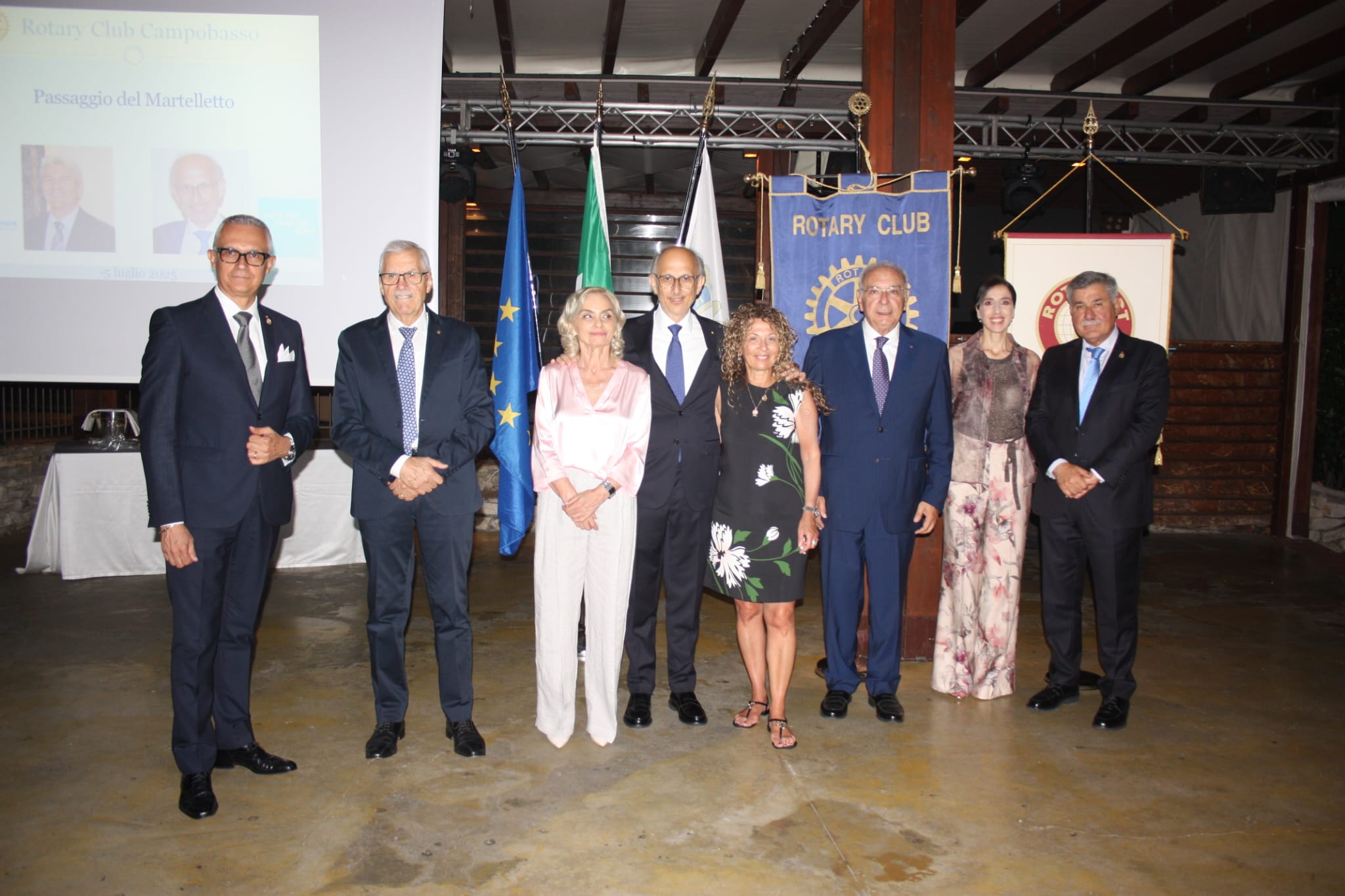 CAMPOBASSO – Nella splendida cornice del Blue Note di Ripalimosani, la serata di venerdì 5 luglio 2025 ha segnato un momento simbolico e carico di emozioni per il Rotary Club di Campobasso. Davanti a un folto pubblico di soci e rappresentanti delle istituzioni locali, si è svolta la tradizionale cerimonia del Passaggio del Martelletto, che sancisce il passaggio di testimone tra i Presidenti e i Consigli Direttivi del Rotary e del Rotaract.