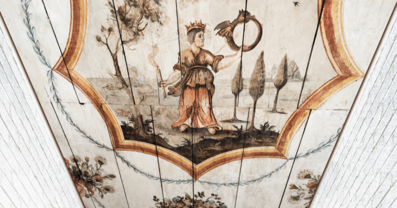 I lavori di recupero hanno riguardato una porzione danneggiata dalle infiltrazioni su cui è raffigurato un dipinto, che risale al ‘700, appartenente all’iconografia del ciclo alchemico.