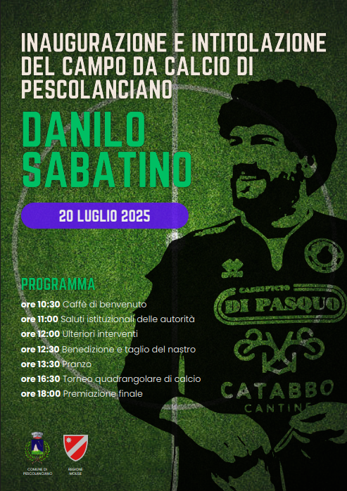 PESCOLANCIANO – Domenica 20 luglio si terrà l’inaugurazione e intitolazione del nuovo campo sportivo comunale.