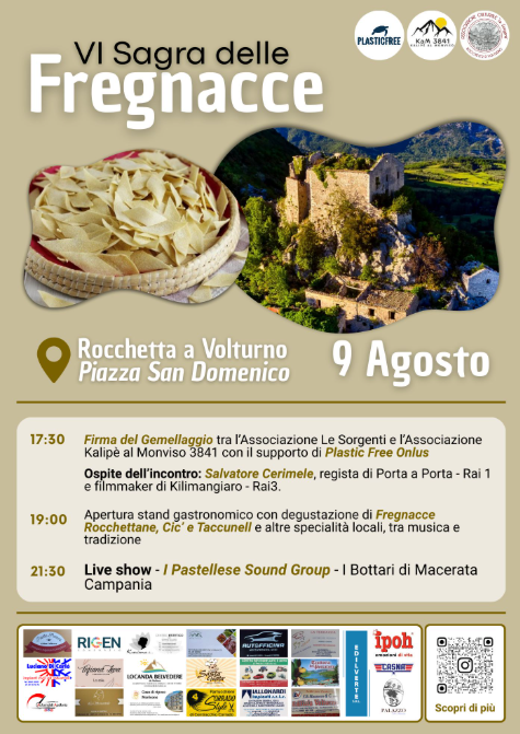ROCCHETTA A VOLTURNO – Il paese si prepara a vivere una delle giornate più attese dell’estate: sabato 9 agosto, in Piazza San Domenico, torna la tradizionale Sagra delle Fregnacce, organizzata dall’Associazione Le Sorgenti.