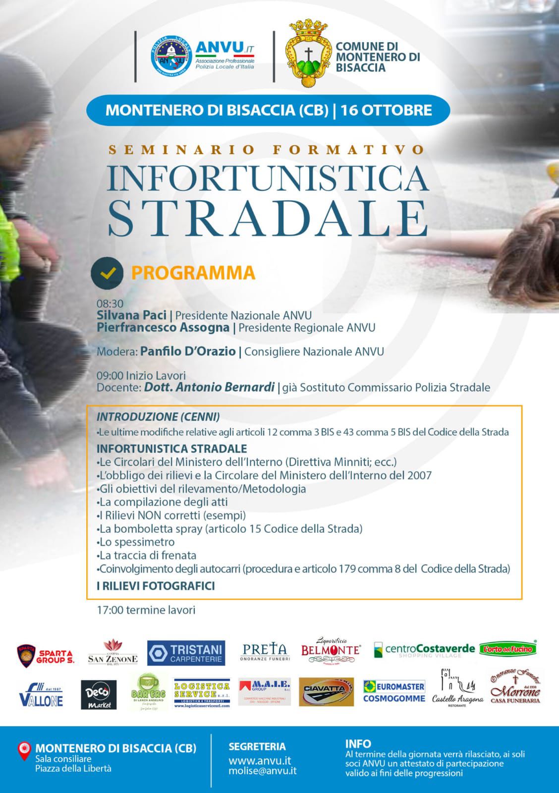 MONTENERO DI BISACCIA – Giovedì 16 ottobre la Sala Consiliare del Comune di Montenero di Bisaccia, in Piazza della Libertà, accoglierà un importante seminario formativo sull’infortunistica stradale promosso dall’ANVU – Associazione Professionale Polizia Locale d’Italia, in collaborazione con l’amministrazione comunale.