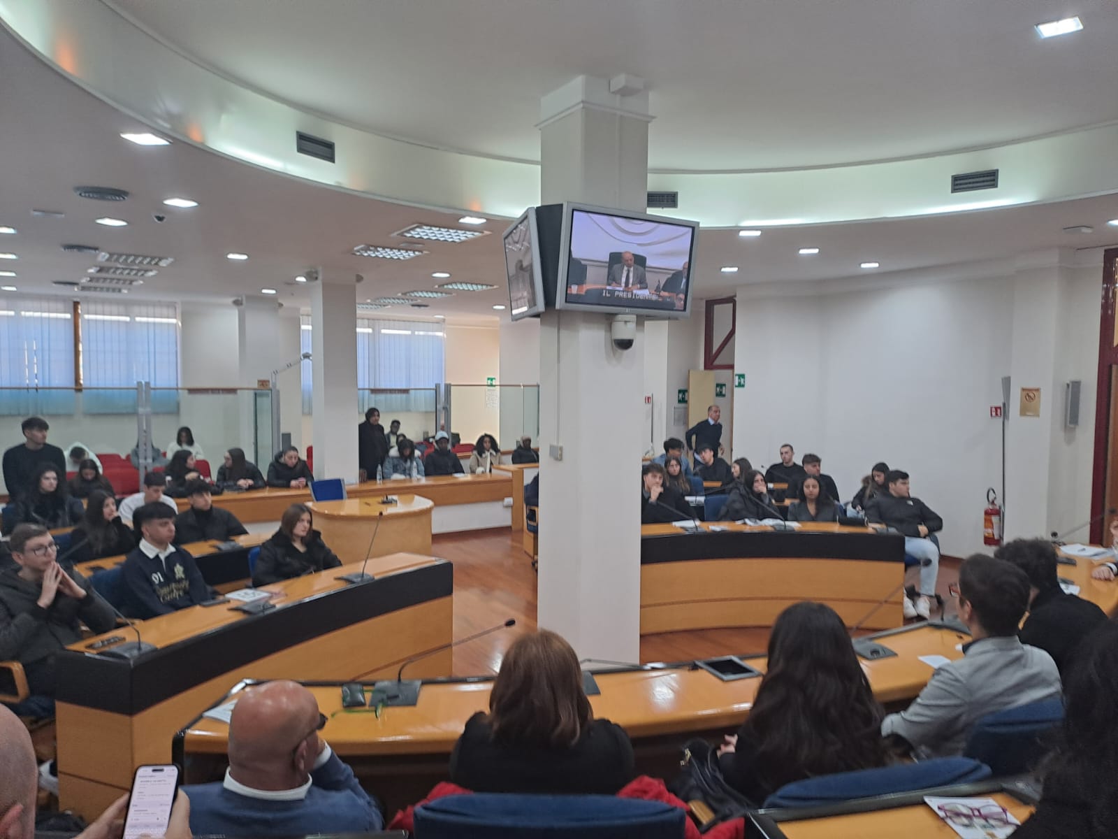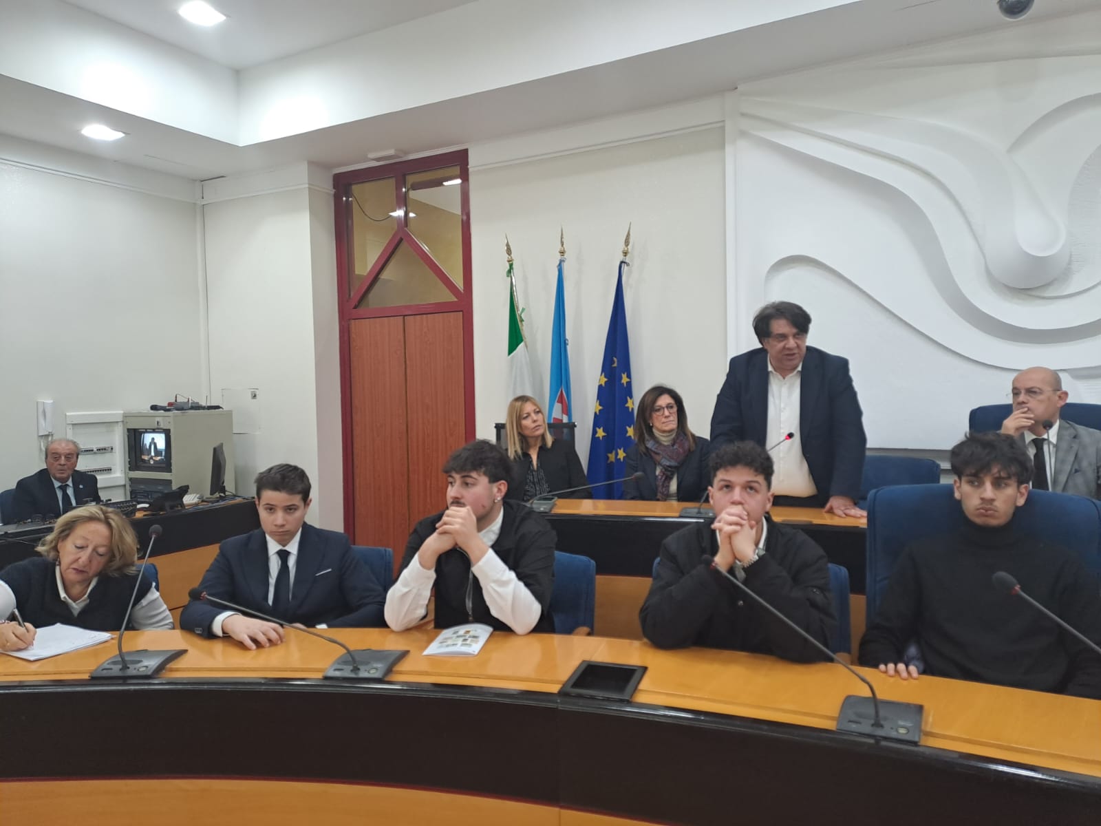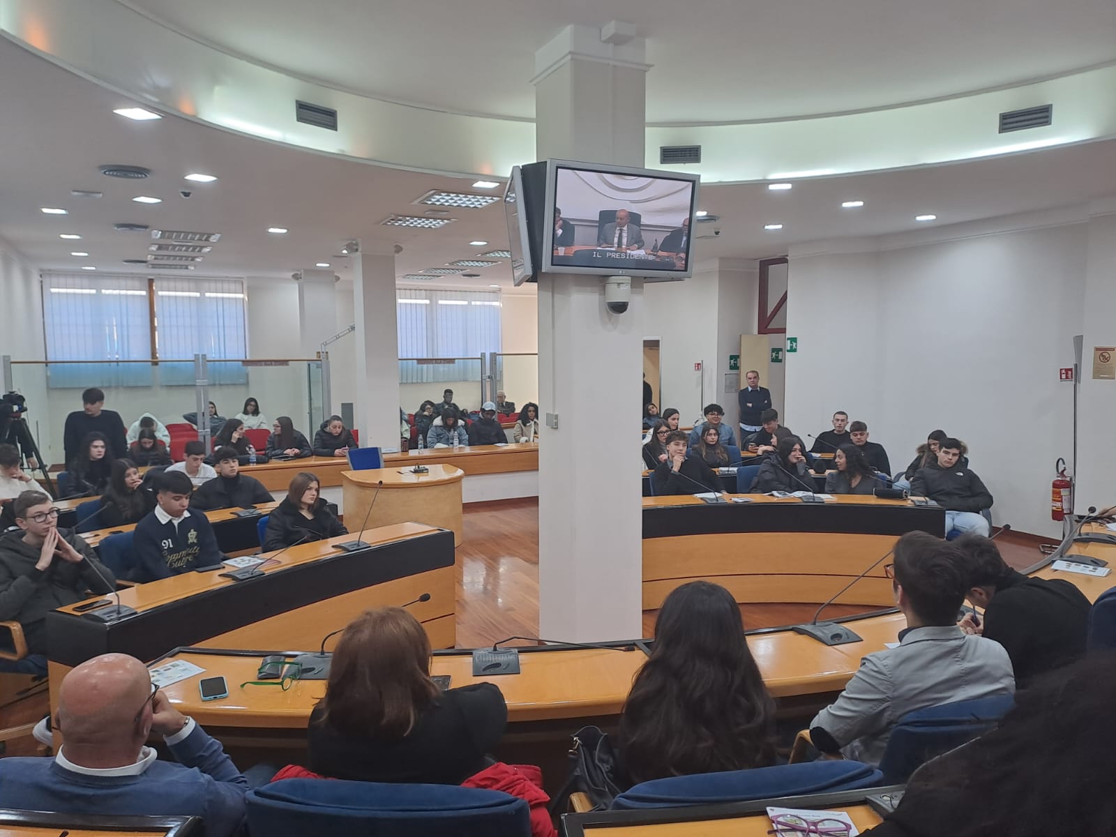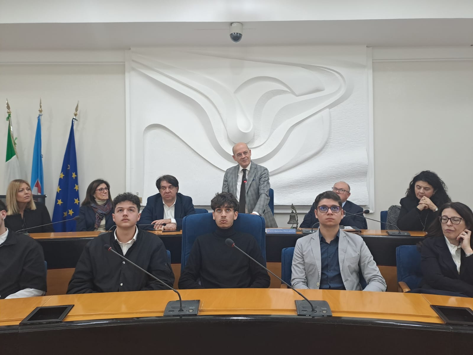 Ha presieduto la seduta il Presidente Quintino Pallante che ha accolto i ragazzi ed i loro docenti prima nella Sala della Biblioteca del Consiglio regionale, dedicata al senatore Lello Lombardi, per poi accompagnarli nell’Aula consiliare ed illustrare il funzionamento dell’Assemblea e i diversi ruoli svolti tra Esecutivo e Consiglieri, maggioranza e minoranza.